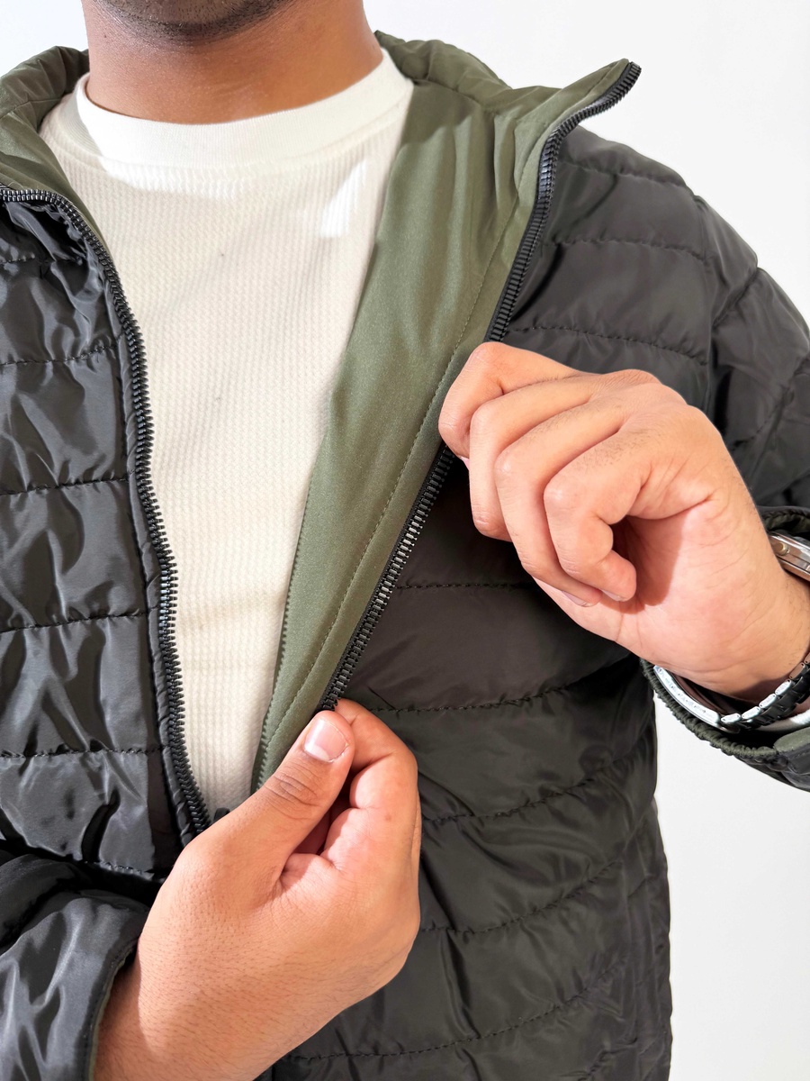 With one side in navy or black, and the flip side in beige or dark green, this jacket adapts to your mood and your day.