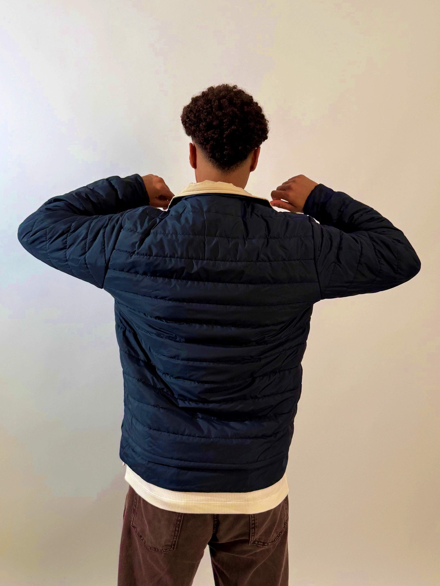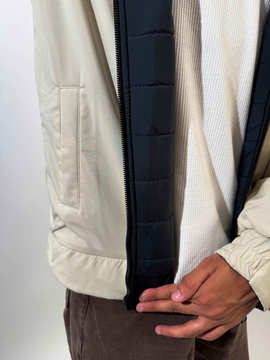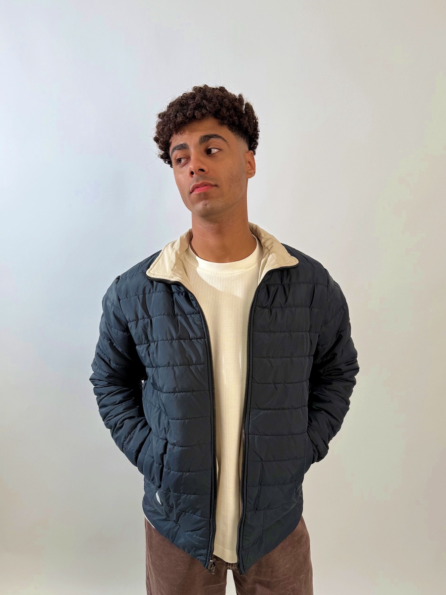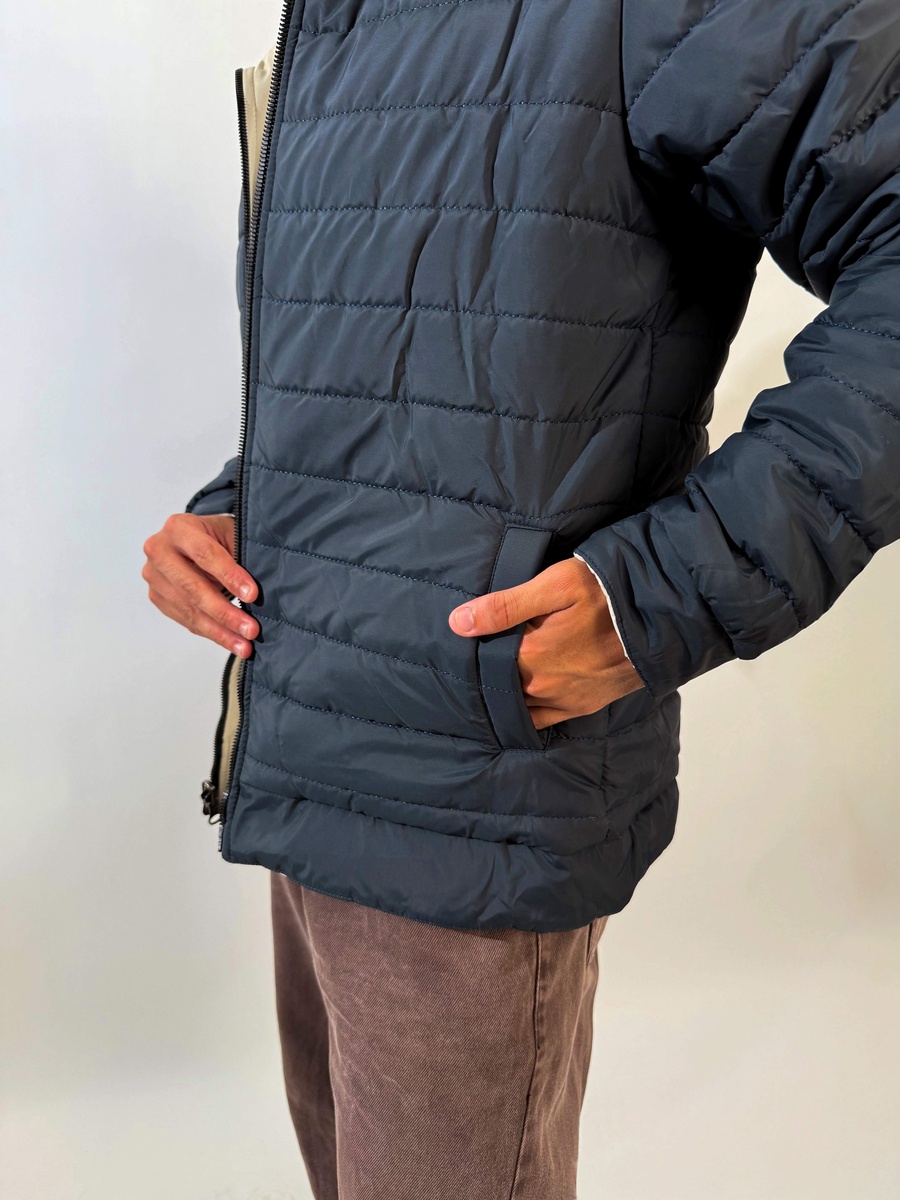 With one side in navy or black, and the flip side in beige or army green, this jacket adapts to your mood and your day.