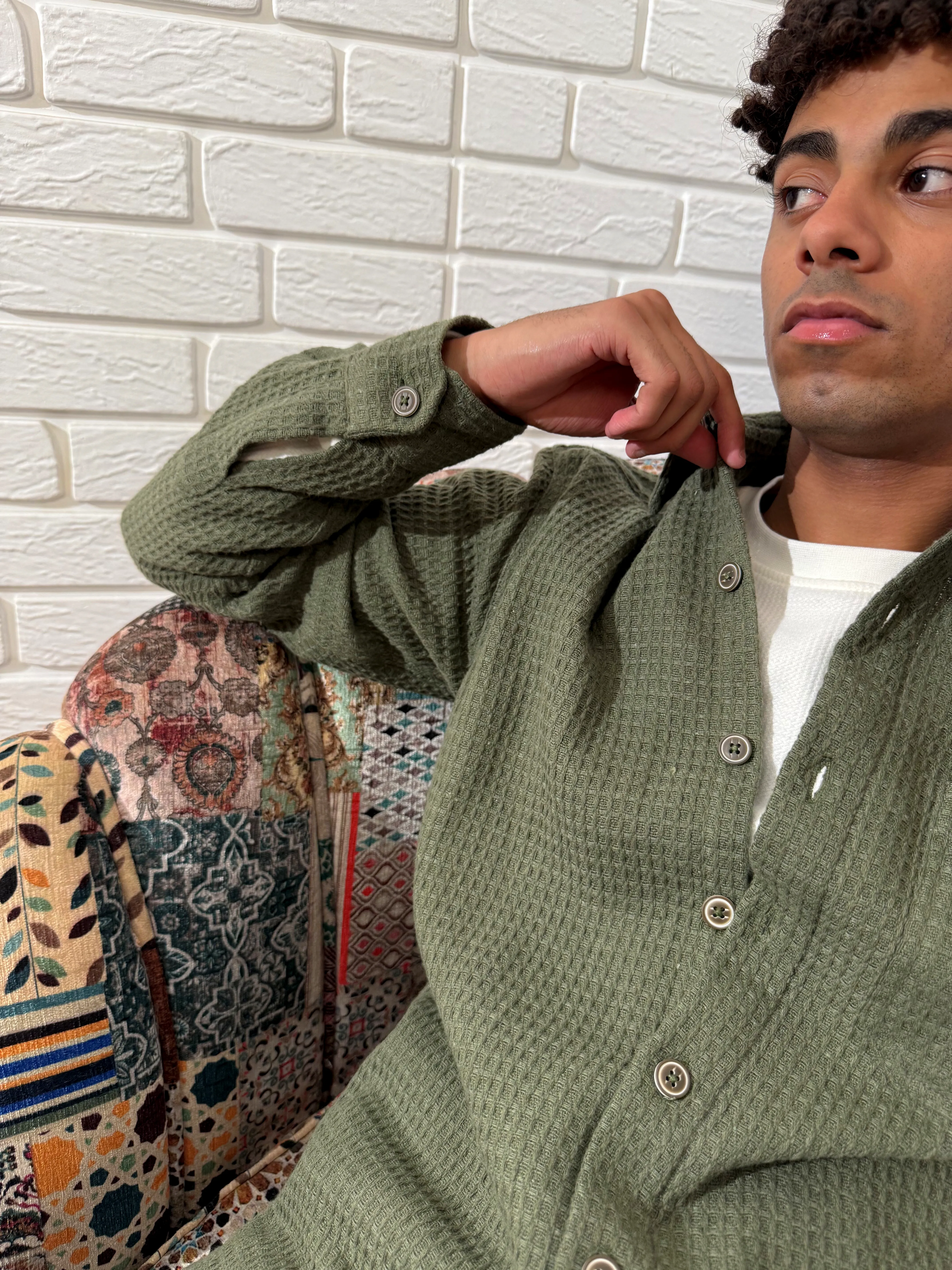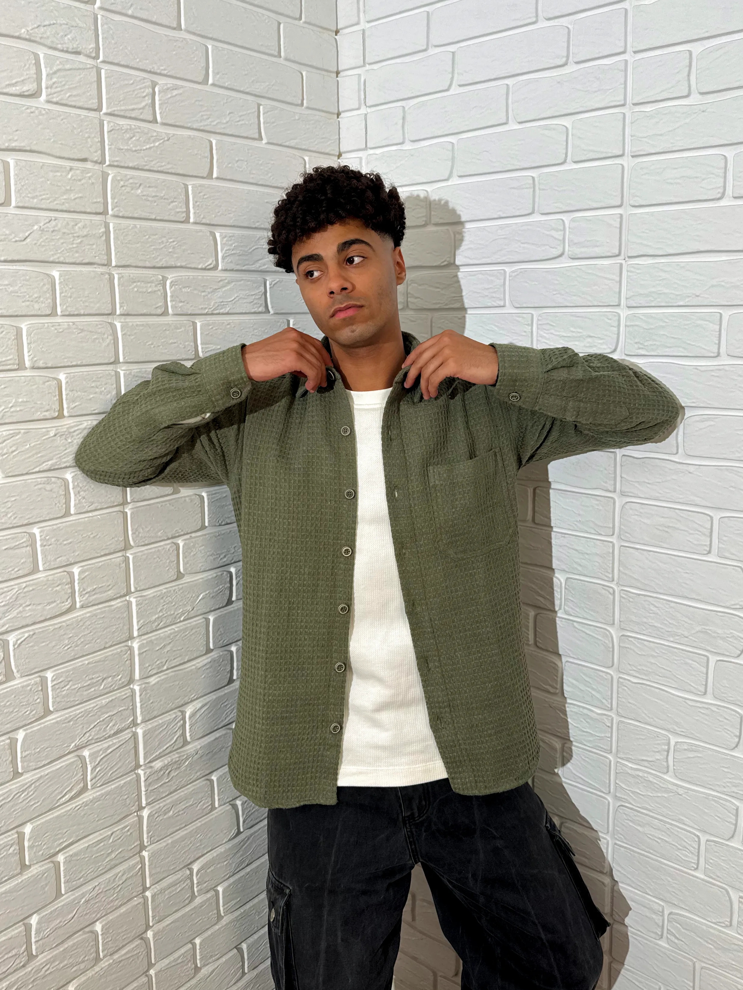 Relaxed Cotton Shirt - Olive Green.