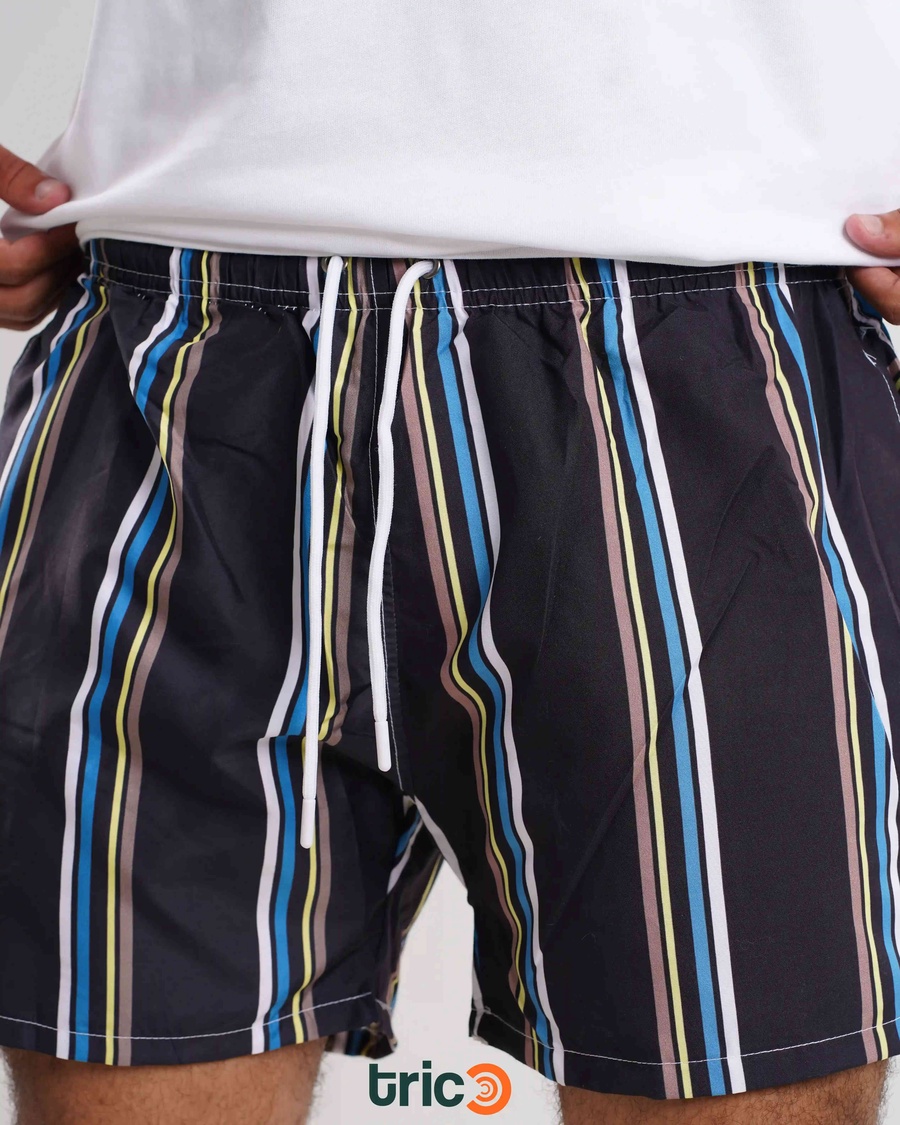 Swim Short - Striped Black