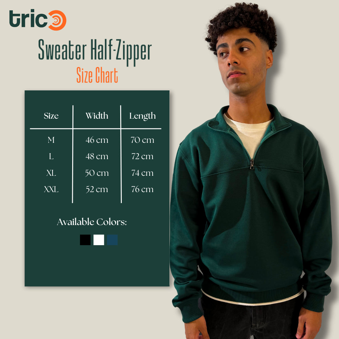 The TriC Half-Zip Sweater is built to move with your day — soft, warm, and designed to look sharp without the effort. Throw it on, zip it up, and go.
